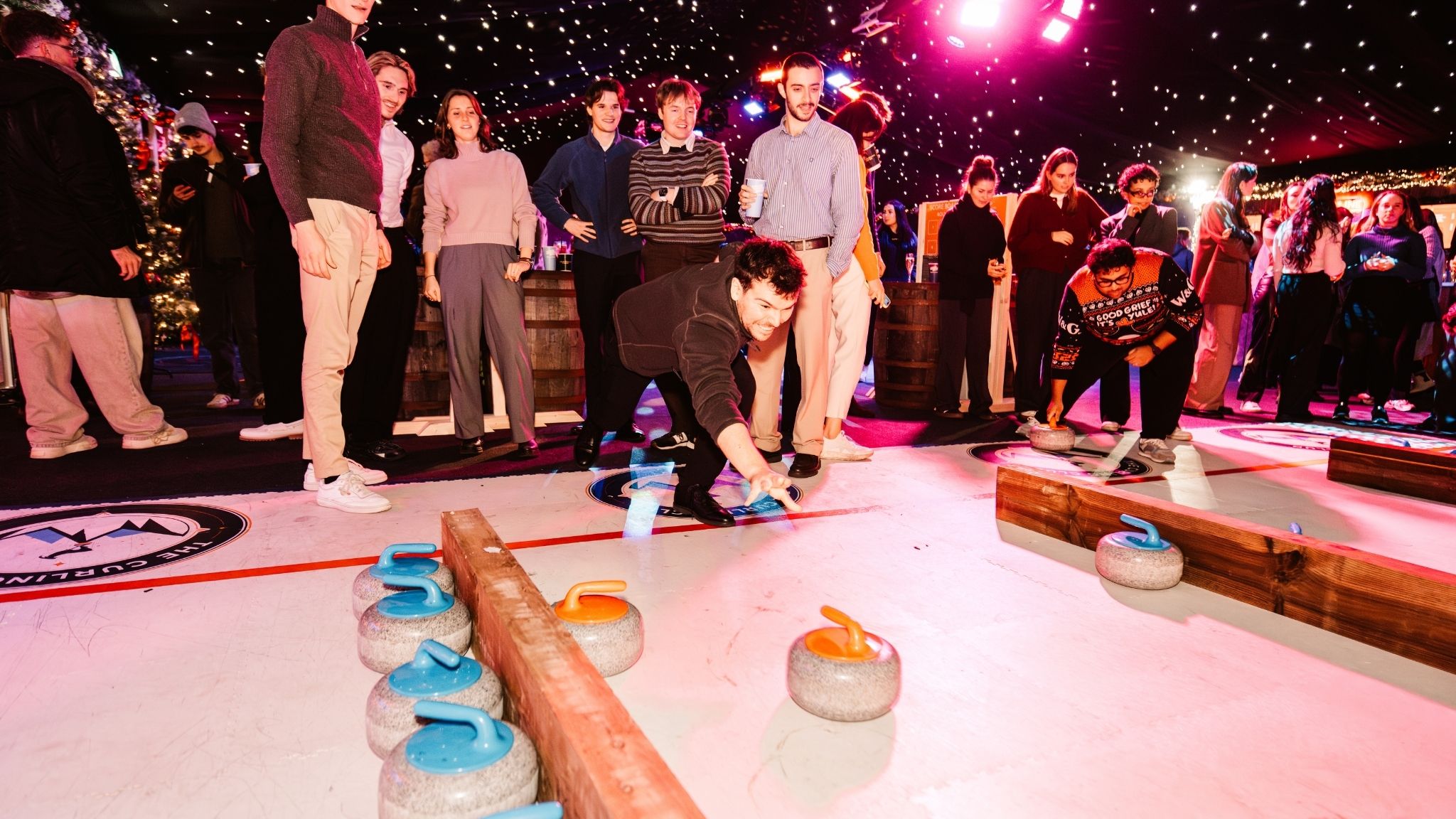 Enjoy 30 or 60 minutes of curling with a 3-course festive menu and half a bottle of wine each. Perfect for Christmas parties, team celebrations, and special occasions.